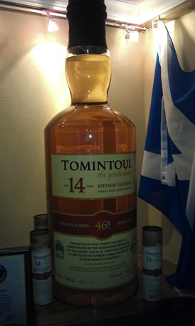 Tomintoul is een dorpje en een Whisky merk, wel een heel leuk plaatsje waar je een shop vind genaamd Whisky Castle tegenover een hotel waar je prima kunt verblijven en dan zit je middenin het Whisky gebied. Hier vind je trouwens de grootste fles Whisky ter wereld en de inhoud is dan ook 105,3 liter!