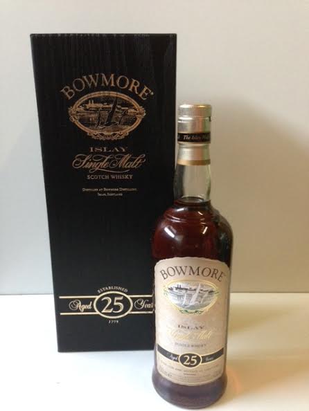 Bowmore 25yo  old bottlingEen 25 jaar oude Bowmore botteling uit het begin van deze eeuw (2003). Deze botteling staat ook wel bekend als de ‘seagulls’ botteling vanwege de zeemeeuwen die op het etiket staan. Een erg fruitige Islay single malt met een rijke rook smaak: