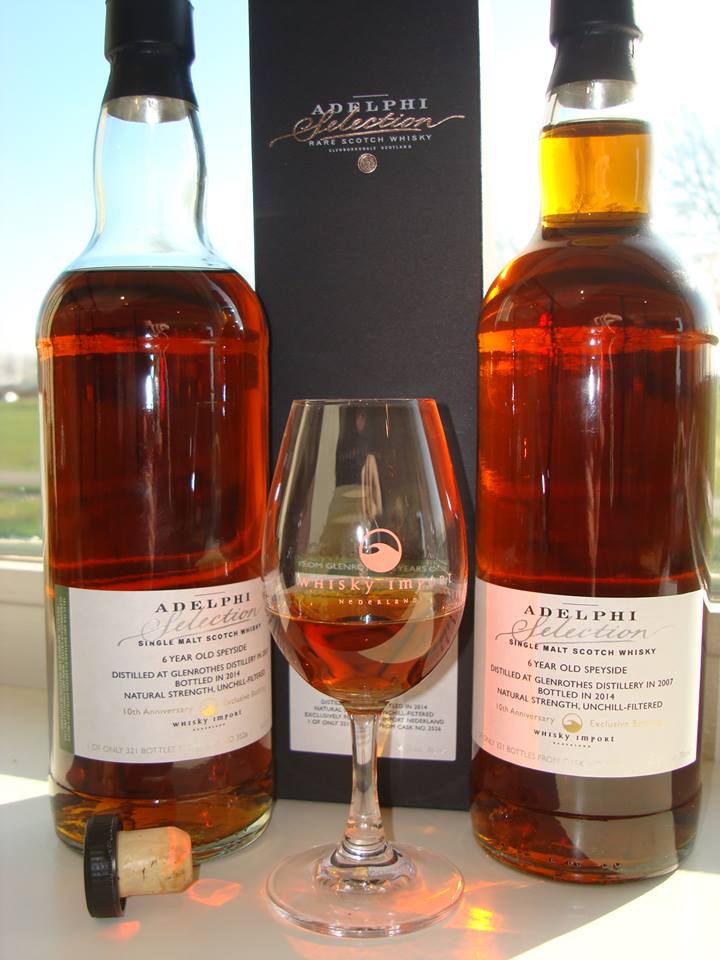 Dit jaar bestaat WIN, Whisky Import Nederland, 10 jaar en om dat jubileum te vieren komen er dit jaar een aantal bijzondere en typische WIN bottelingen op de markt. Deze 6 jaar oude Glenrothes uit distillatiejaar 2007 is de eerste jubileum botteling. Omdat de Adelphi distilleerderij de eerste was met een samenwerkingsverband met WIN is besloten om Alex Bruce van Adelphi te vragen voor de deze botteling.