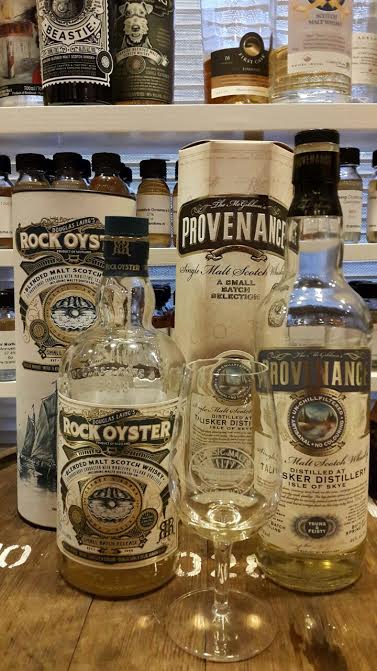 Voor een nieuwe review hebben we 2 Islands malts van Douglas Laing naast elkaar gezet. De nieuwe vatted Islands malt Rock Oyster en onze ‘alltime favourite Talisker’ de Young & Feisty uit de Provenance serie. Rock Oyster is alsgezegd de nieuwe vatted malt en past in het rijtje Big Peat, Scallywag en Timorous Beastie. De malts voor deze whisky komen van Arran, Jura, Orkney en Islay daar waar de Talisker van Skye komt. Het was gaaf geweest als er ook Talisker in Rock Oyster had gezeten maar dan zou het waarschijnlijk een dure aangelegenheid zijn geworden. Douglas Laing is, zover wij weten, op dit moment de enige onafhankelijk die vaten Talisker heeft en kan/mag kopen. Het zou dan ook zonde zijn om deze direct weer in een vatted malt te stoppen. Wij zijn namelijk wel erg blij met de independent Talisker zoals deze in de Provenance serie en een 5 jaar oude in de Premier Barrel serie.