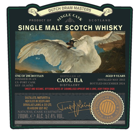 Deze Caol Ila is een 9 jaar oude release uit mei 2015 met een finish op een witte port vat. Die is eind 2024 op 9 jarige leeftijd gebotteld op vatsterkte van 57,4%, non chill filtered en zonder toevoeging van kleurstoffen en met een oplage van 396 flessen.