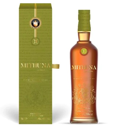De Mithuna is een ongeturfde Indiase single malt die gerijpt heeft in American virgin oak casks gevolgd door een finish in ex-bourbon casks. Een small batch release die gebotteld is op 58%.